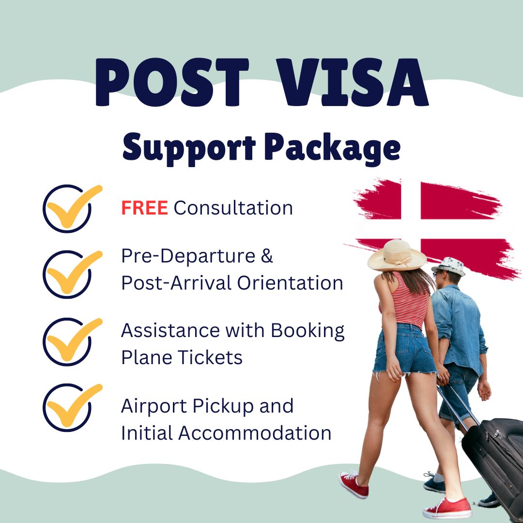 Our Post-Visa Support Package offers comprehensive assistance to ensure a smooth transition to life in Denmark. From pre-departure preparation and airport pickup to language training, healthcare system integration, and ongoing professional development, we provide all the support needed for a successful start in your new home.